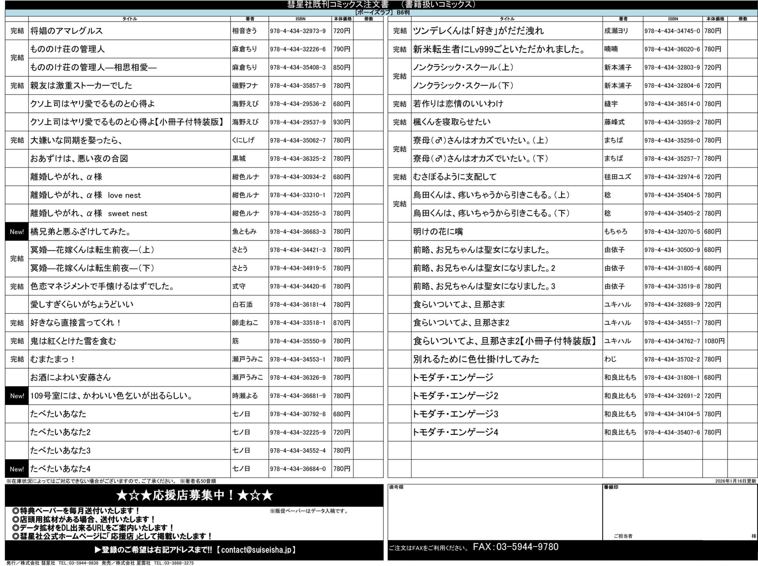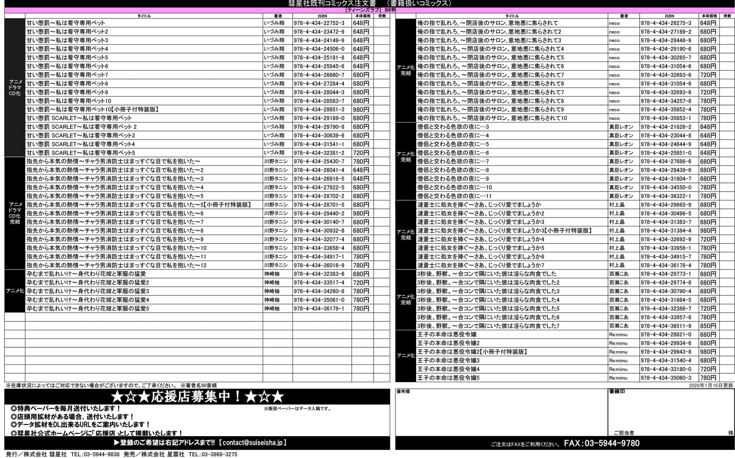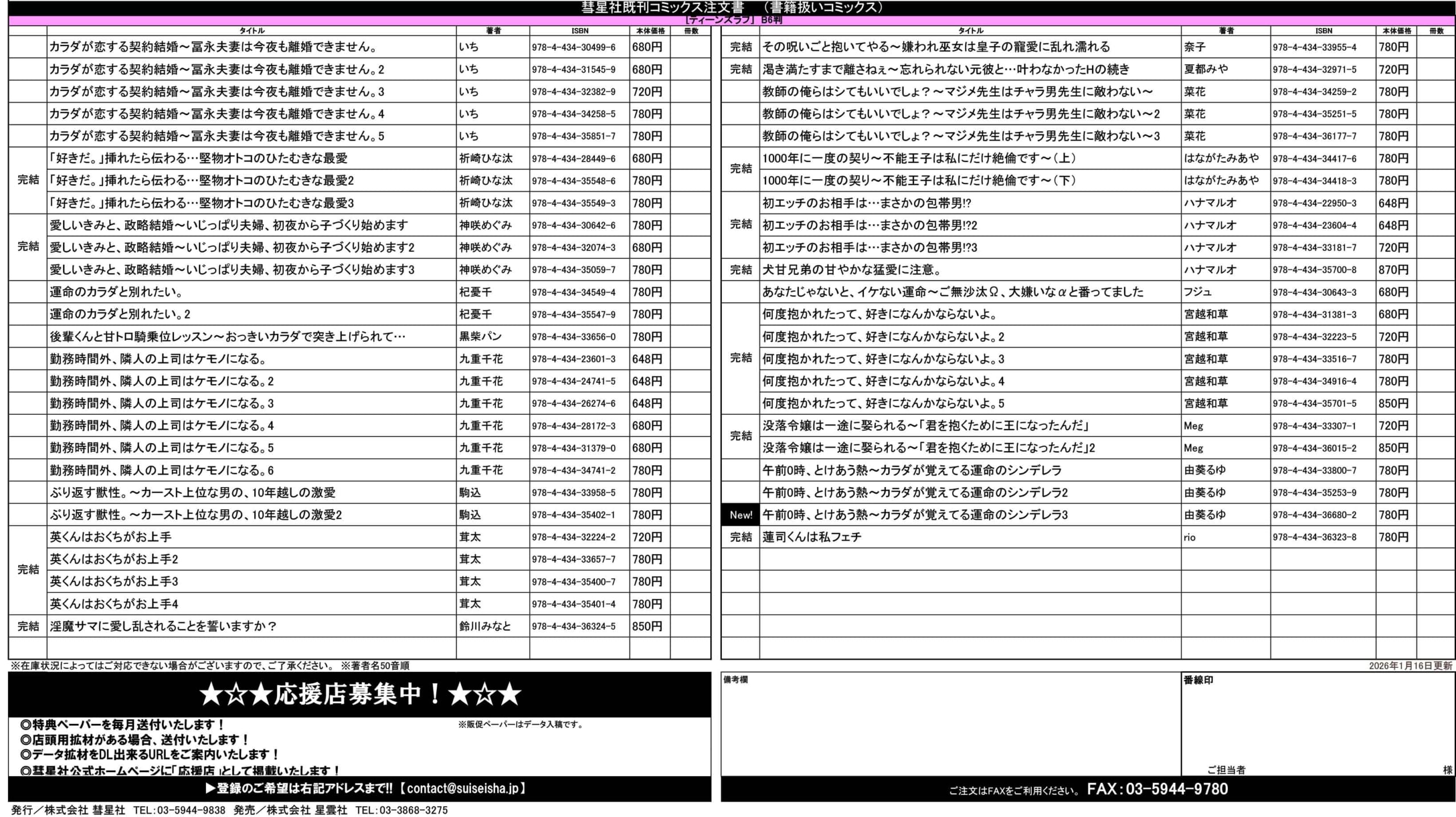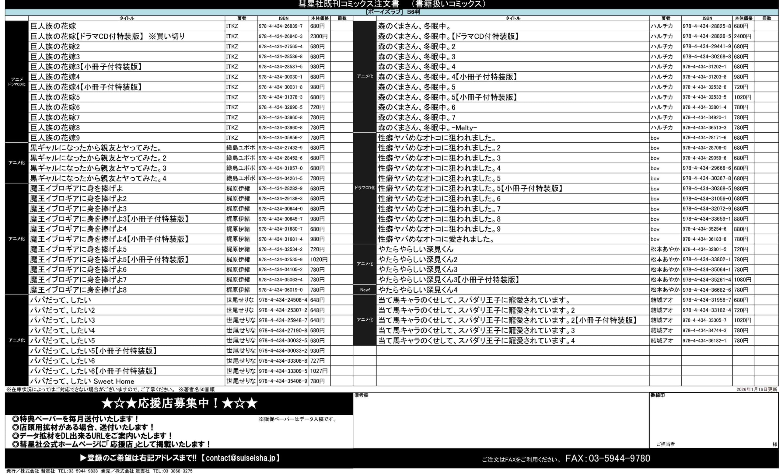 ◆コミックス注文書ダウンロード 2026/01/16更新